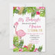 Invitation d'anniversaire avec Flamant rose et Feuilles tropicaux