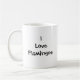 Photo de gros plan d'origine d'une flambée rose qui se niche sous ses plumes. La photo est d'un côté de la tasse avec les mots "J'aime les Flamants roses" de l'autre. Le texte est personnalisable et peut être modifié ou supprimé selon vos besoins.