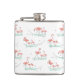 Design d'inspiration du milieu du siècle avec une touche rétro avec des groupes de flamants roses debout dans l'eau d'eau d'aqua contre un arrière - plan blanc. Un design personnalisable pour personnaliser avec votre propre texte, images et idées. Image d'art numérique originale créée par Jess Perry sur QuirkyChic Retro.