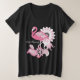 Le design du produit est composé d'un flamant avec des motifs de cachemire kaléidoscopique dans les tons roses. Cette illustration fantasque d'oiseaux tropicaux au texte personnalisé fait d'un T-shirt moderne et unique en son genre pour les femmes.
