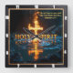 This incredibly moving and symbolic design powerfully conveys the theme of Flame and Water—the spiritual cleansing and empowering baptism of the Holy Spirit. The artwork, featured on a square wall clock, displays a vivid cross made entirely of fire rising dynamically from dark, rippling water. The bright cross is beautifully reflected in the liquid below, emphasizing the depth and reality of the divine message from Matthew 3:11: "He will baptize you with the Holy Spirit and fire." The visual combination of fire and water symbolizes purification and the transformative power of faith. The highest quality print and artwork used on the surface is so exceptional it creates a stunningly realistic tactile illusion; you could easily mistake the textures for genuine embossed metal or heavy, worn leather. This piece is a spectacular dedication to faith and the power of the Holy Spirit. this impressive, high-quality piece is a perfect gift for any devoted person, honoring their spiritual journey.
