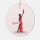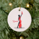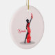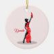 Flamenco Dancer bedrückte Design in rot und schwarz. Sie hält einen Ventilator und ist stehend auf einer Plattform.