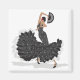 Ein hübscher Flamenco-Tänzer in einem langen schwarzen Kleid mit Polka-Punkten.