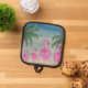 Flamingo and palm tree tropical theme kitchen pot holder. Fun beach kitchen accessory.
