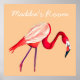 Niedliche Aquarellbild eines Flamingos in orange-weißer, kreativer und moderner Vogelgestaltung. Orange, Rosa und Weiß.