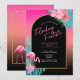 Feiern Sie mit einem "Flocking Fantastic" Junggeselinnen-Abschied! Rosa Flamingos, tropische Blätter aus Palmen und Blumen mit Gefälle Hintergründen, von heiß rosa bis fett türkisfarben, werden durch gewölbte geometrische Formen in Vollschwarz betont. Diese farbenfrohe Einladung benutzt eine kleine "bunte" Sprache als eine einzigartige Möglichkeit, Gäste zu Ihrem Ziel bachelorette einzuladen. Suchen Sie ID930 um alle koordinierenden Produkte in dieser Sammlung zu sehen.
