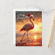 "This stunning, unique illustration captures the spirit of a tropical Christmas. A beautiful pink flamingo stands elegantly on the beach at sunset, dressed up with a classic Santa hat. The scene combines the warmth of the tropics with festive cheer, complete with light snowfall. This graphic is perfect for holiday cards for those who prefer warm weather, Hawaiian or Florida-themed Christmas products, mugs, t-shirts, and beach-themed Christmas decorations."
