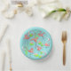 Lebhafte, rosa Flamingos schlagen mit ihren Flügeln und ruffeln ihre Federn vor blauem, wässrigem Hintergrund mit Schilfpflanzen und Wasserlilien. Ein inspiriertes Design aus der Mitte des Jahrhunderts mit einer Retro-Touch, die mit eigenen Texten, Bildern und Ideen personalisiert werden kann. Ein originelles digitales Kunstbild von Quirky Chic.