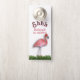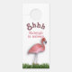 Ein Flamingo warnt die Menschen, dass ihr Baby schläft. Die Rückseite hat das gleiche Bild, aber stattdessen eine Palme.