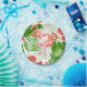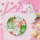 Aquarellmuster Design mit Flamingo-Blume und Vögeln, Monstera und Palmen-Blätter.