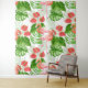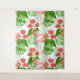 Aquarellmuster Design mit Flamingo-Blume und Vögeln, Monstera und Palmen-Blätter.