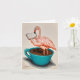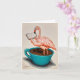 A flamingo soaks feet while reading a book - and hopes to get well soon. The original art was handmade by Sue Clancy using ink and gouache.