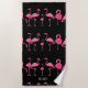 Flamingo Flock Beach Handtuch Flamingo ist ein großer Wadingvogel mit hauptsächlich rosa oder scharlachrot abstürzen und langen Beinen und Hals. Es hat eine schwere verbogene Rechnung, die im Wasser auf den Kopf gehalten wird, um auf kleine Organismen füttern.