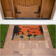 Flamingo Hexe Halloween Haustürme Strand Küste Zuhause Holiday Haustüre Teppich mit meiner Kunst. Flamingos und Kürbis in den tropischen Sonnenuntergang Dekoration für Halloween.