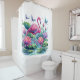 Ein schöner Vorhang mit tropischer Dusche mit Blume und rosa Flamingo