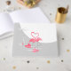 Ein Paar rosa Flamingos mit geschwungenen Halsbändern, die eine Herzform bilden, stehen auf einem mondbeleuchteten Strand im Meer. Stilvolles, romantisches Design mit Retro-Touch in rosa, grauen und weißen Farbtönen mit Farbwechsel. Ein individuell anpassbares Design für Sie, um mit Ihrem eigenen Text, Bildern und Ideen zu personalisieren. Ein originelles digitales Kunstbild.
