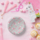 Ein Paar rosa Flamingos mit geschwungenen Halsbändern, die eine Herzform bilden, stehen auf einem mondbeleuchteten Strand im Meer. Ein inspiriertes romantisches Design aus der Mitte des Jahrhunderts mit einer Retro-Touch in rosa, graue und weiße Farbgebung mit Farbwechsel. Ein individuell anpassbares Design für Sie, um mit Ihrem eigenen Text, Bildern und Ideen zu personalisieren. Ein originelles digitales Kunstbild.