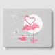 Ein Paar rosa Flamingos mit geschwungenen Halsbändern, die eine Herzform bilden, stehen auf einem mondbeleuchteten Strand im Meer. Stilvolles, romantisches Design mit Retro-Touch in rosa, grauen und weißen Farbtönen mit Farbwechsel. Ein individuell anpassbares Design für Sie, um mit Ihrem eigenen Text, Bildern und Ideen zu personalisieren. Ein originelles digitales Kunstbild.