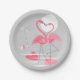 Ein Paar rosa Flamingos mit geschwungenen Halsbändern, die eine Herzform bilden, stehen auf einem mondbeleuchteten Strand im Meer. Ein inspiriertes romantisches Design aus der Mitte des Jahrhunderts mit einer Retro-Touch in rosa, graue und weiße Farbgebung mit Farbwechsel. Ein individuell anpassbares Design für Sie, um mit Ihrem eigenen Text, Bildern und Ideen zu personalisieren. Ein originelles digitales Kunstbild.