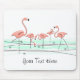 Mitte des Jahrhunderts inspiriertes Design mit einer Retro-Touch mit einer Gruppe von rosa Flamingos stehend in Aquawasser vor einem weißen Hintergrund. Ein individuell anpassbares Design für Sie, um mit Ihrem eigenen Text, Bildern und Ideen zu personalisieren. Ein originelles digitales Kunstbild, das von Jess Perry bei QuirkyChic Retro erstellt wurde.