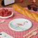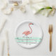 Inspiriertes Design aus der Mitte des Jahrhunderts mit einer Retro-Touch mit einem rosa Flamingo, stehend in Aquawasser vor weißem Hintergrund. Ein individuell anpassbares Design für Sie, um mit Ihrem eigenen Text, Bildern und Ideen zu personalisieren. Ein originelles digitales Kunstbild, das von Jess Perry bei QuirkyChic Retro erstellt wurde.