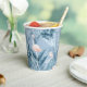 This paper cup features a gorgeous pattern of flamingos surrounded by abundant tropical foliage and orchids in dusty blue and blush pink. Search ID868 to see other products with this cool, tropical pattern.