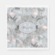 This paper napkin features a gorgeous pattern of flamingos surrounded by abundant tropical foliage and orchids in warm gray and blush pink. A label has been provided to hold your name and monogram or other text. Search ID868 to see other products with this cool, tropical pattern.
