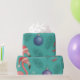 Ein verspieltes tropisches Weihnachtsdesign mit eleganten rosa Flamingos in Weihnachtsmannmützen, umgeben von lila und blauen Ornamenten, Palmenfronten und festlichen Sternakzenten. Der aquamarine Hintergrund verleiht der Küstenstadt eine frische Atmosphäre, die sich perfekt für Papierverpackungen, Ferientextilien oder ein fröhliches saisonales Dekor eignet. Es verbindet die Launen der Flamingos mit dem klassischen Weihnachtsfunkel für ein einzigartiges Strandambiente.