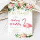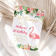 Dieses elegante Design zeichnet sich durch helle, farbenfrohe tropische Aquarellfarben-Blume mit Imitaten goldenen Folienakzenten und einem Flamingo aus.