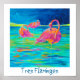 Dieses farbenfrohe Poster wird von Anne Ormsby mit drei Flamingos-Gemälden in Aquarellen geschmückt.
