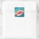 Flamingo Relaxing On a Pool Mattress Quadratischer Aufkleber