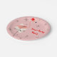 Inspiriertes festliches Design mit einem rosa Flamingo mit einer Weihnachtsmannmütze, cremefarbenen geometrischen Formen und Sternen auf einem rosa (farbigen) Hintergrund. Ein individuell anpassbares Design für Sie, um mit Ihrem eigenen Text, Bildern und Ideen zu personalisieren. Ein originales digitales Kunstbild von QuirkyChic.