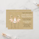 Ein lustiges, stilvolles Hochzeitsdesign mit einer Retro-Touch. Ein Paar pfirsichfarbene Flamingos stehen beiderseits eines Hochzeitskuchens mit Pfirsichherzen, Konfetti, goldenen Ringen und Kurven vor einem neutralen braunen Hintergrund. Ein individuell anpassbares Design für Sie, um mit Ihrem eigenen Text, Bildern und Ideen zu personalisieren. Ein originelles digitales Kunstbild.