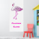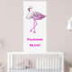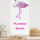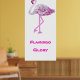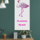 Mosaik, grafisch gezeichnet, aus einem tropischen Flamingo-Vogel, in exotischen, Abstrakten Farbmustern, hell-rosa, violett, fuschia, dunkelbraun und schwarz, vor dunkelgrau, Hintergrund.
