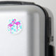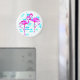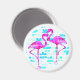 Tropischer Magnet mit zwei rosa Flamingos vor einem blauen Hintergrund. Anpassen mit jedem gewollt Text.