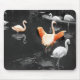 Schwarzweiss-Foto mit Rosa farbigen Flamingos