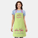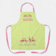 Flamingos Bib Schürze mit rosa Text auf Zeichentrick. Für eine Business oder eine Küchenzeile. Vier Flamingos auf der Spitze der Schürze und vier größere Flamingos auf der Wasserlinie. Sie tragen Blumenkränze und stehen unter kleinen blauen Sternen.