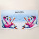 Zwei Flamingos schillen am Strand und genießen ihren Tag mit ein paar Drinks, die auf Kissen entspannen.