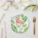 Flamingos und tropische Blätter sind ein nahtloses Muster aus Aquarellelementen.