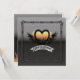 Das coole Flames Heart Rock'n'Roll Biker Wedding Invitation ist die Lösung für alle Ihre Gäste und ist ein perfekter Sake für Ihren großen Tag als Bikerbride! Erleben Sie die offene Straße mit einer coolen Rock-and-Roll-Biker-Hochzeitseinladung, die Ihre Liebe als Paar für Ihre Fahrräder widerspiegelt. Ein grafisch umrissenes Herz wird durch Flammen und coole Flügel vor einem reichen schwarzen Bersthintergrund mit einem oberen und unteren Rand von Stacheldraht betont. Verfügbar mit passenden Produkten.