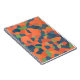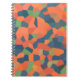 Un Carnet en spirale accrocheur, utilisable comme journal, avec un motif abstrait aux couleurs vives - Flaming Orange, Midnight Blue et Deep Green, d'un design numérique de Judy Adamson