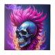 Dieses auffallende Kunstwerk besticht durch einen lebhaft bunten Punk-Schädel, dessen hohle Augen lebendig mit Einstellung und Energie sind. Ein wilder, elektrisierender Mhawk platzt von der Spitze des Schädels, der in kühnen Tönen dargestellt wird, die den rebellischen Geist der Punk-Kultur einfangen.