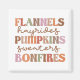 Dieses spielerische und lebendige Design ist perfekt für die Herbstsaison, besonders für den Erntedank, mit dem eingängigen und lustigen Satz "Türkei, Gravy, Bohnen und Rollen, Lass mir sehen, dass Casserole". Der Text ist in einem gestapelten Layout angeordnet, wobei jede Zeile eine andere Farbe hat als eine warme, Herbst inspiriert Palette. Die Farbtöne reichen von Orangen und Braun bis hin zu weichen Pinks, Blues und Gelb und spiegeln die gemütliche und festliche Atmosphäre der Herbsttage-Ansammlungen wider. Der stinkige Retro-Schriftart verleiht dem Design ein nostalgisches und skurriles Ambiente, während die sternähnlichen Glitzern, die über die gesamte Anlage verteilt sind, das feierliche Ambiente unterstreichen.