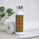 Überall, wo Sie hingehen, können Sie eine isolierte Wasserflasche mit einer inspirierenden Botschaft und einem wunderschönen Design mit Fotos fröhlicher Sonnenblumen genießen, umgeben von Rändern, die aus den faszinierenden Mustern der Baumrinde stammen.