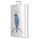 Un dessin au crayon couleur d'un bel oiseau bleu orne cette fiole personnalisable !