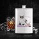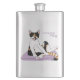 Petit chat calico assis sur un coussin avec la langue qui sort et la jambe levée, un chat très classe.
