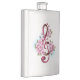 Pink treble clef with delicate, detailed pink Japanese cherry blossoms against white background painted over with light blue paint Blooming pink sakura.
