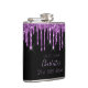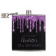 Un cadeau pour une fête de 21e anniversaire, jeune fille et glamour. Un arrière - plan noir classique avec des gouttes de parties scintillant violette, la peinture goutte à goutte. Le texte : Le nom est écrit en violet avec un script de style moderne écrit à la main. Personnalisez et ajoutez un nom, 21 ans et une date.