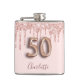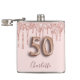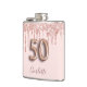 Un cadeau pour une fête de 50e anniversaire girly et glamour. Un or rose clair, arrière - plan rose avec élégante parties scintillant en or faux rose gouttes, la peinture goutte à goutte. Le texte : Le nom est écrit en or rose foncé avec un script de style manuscrit moderne. Personnalisez et ajoutez un nom. Le numéro 50 est écrit avec une police de style ballons d'or rose.