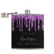 Un cadeau d'amis pour une fille de 21e (ou tout âge), jeune et glamour. Un arrière - plan noir classique avec des gouttes de parties scintillant violette, la peinture goutte à goutte. Le texte : Le nom est écrit en violet avec un script de style moderne écrit à la main. Personnalisez et ajoutez un nom, 21 ans et une date. Retour : ajoutez vos noms.